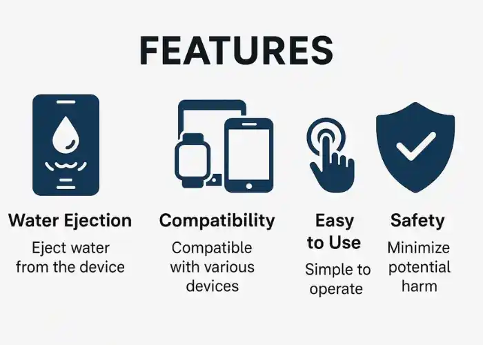 The primary feature of this software is to eject water from the device. If water gets stuck in the device, it can distort or decrease the sound quality.