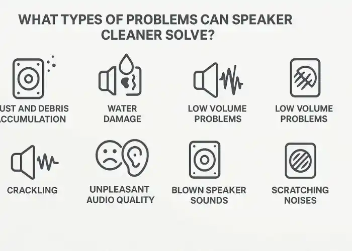 Speaker cleaner can solve a vast range of problems, especially those related to sound clarity and quality. Here is the list below of difficulties that we can tackle.